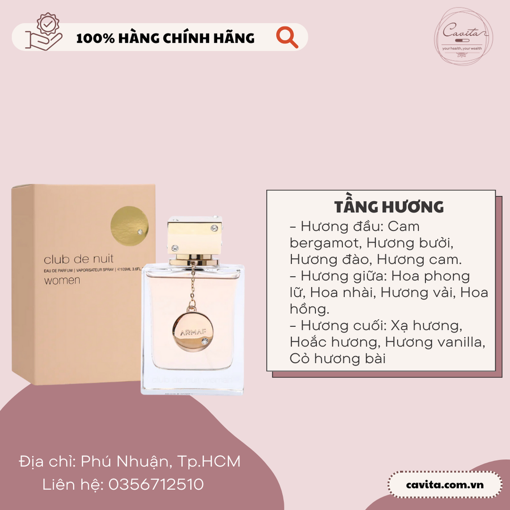 Được ra mắt vào năm 2015, Armaf Club De nuit Women là một kỳ công vang dội khi mang tới những mùi hương khẳng định đẳng cấp của sự xa xỉ, sang trọng đến với giới thượng lưu cũng như những người yêu thích nước hoa trên toàn thế giới.